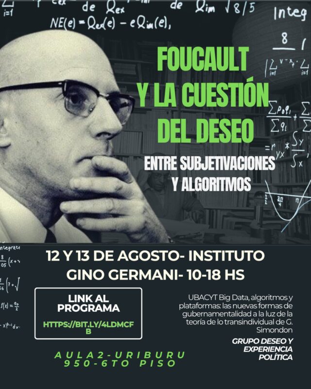Coloquio «Foucault y la cuestión del deseo, entre subjetivaciones y algoritmos»12 y 13 AGO - 10 a 18 HS. | AULA 2