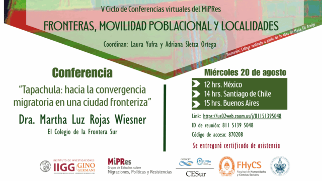 Las/os invitamos a la tercera conferencia del V Ciclo de Conferencias Virtuales del MiPRes IIGG UBA «Fronteras, movilidad poblacional y localidades».