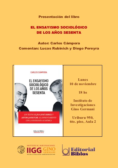 Los invitamos a la presentación del libro de Carlos Cámpora El ensayismo sociológico de los años sesenta. Los textos de Juan José Sebreli y Arturo Jauretche, el enfrentamiento con la sociología académica (Editorial Biblos, 2025).