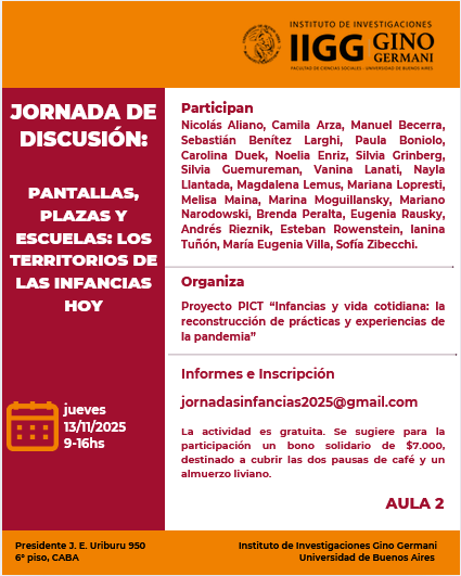 Jornada de discusión | Pantallas, plazas y escuelas: los territorios de las infancias hoyJUE 13 NOV - 9 HS. | AULA 2