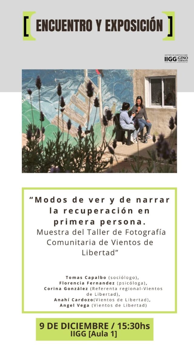 Los invitamos a la muestra de cierre del Taller de Fotografía Comunitaria, un proyecto realizado junto a participantes de Vientos de Libertad que exploraron, a través de sus celulares, nuevas maneras de mirar y narrar la recuperación del consumo problemático y la experiencia de la calle.